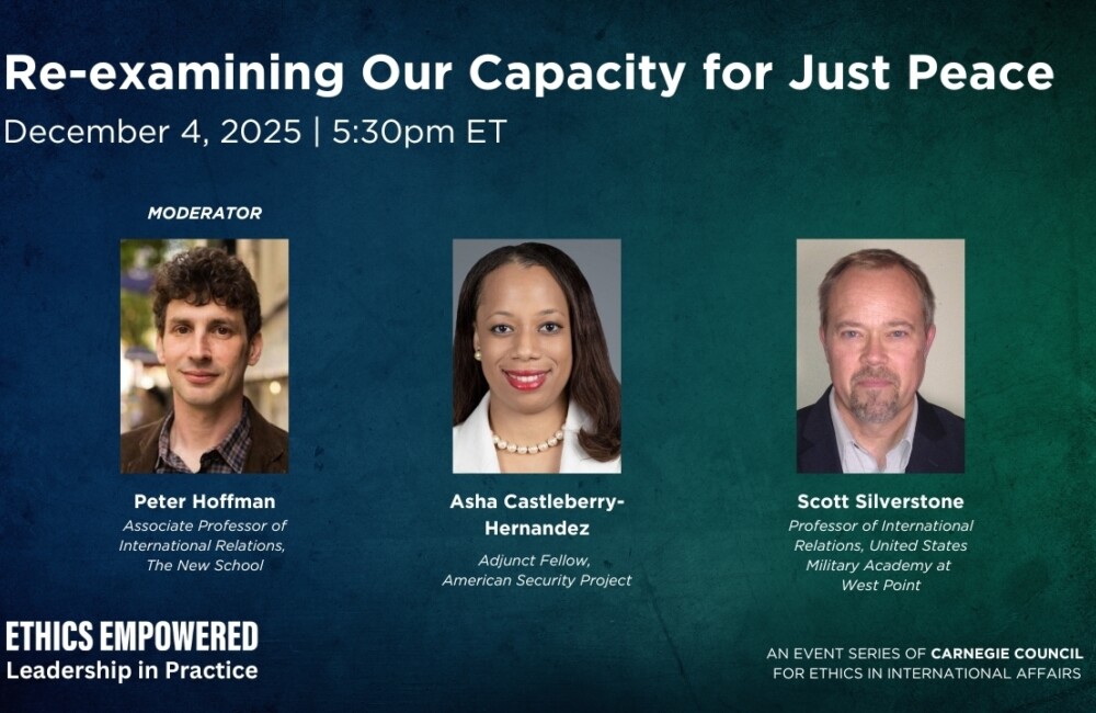 在 2023 年全球伦理日的主题活动中,Carnegie Council 主席乔尔-罗森塔尔(Joel Rosenthal)主持了一场关于我们如何为加强合作创造条件的对话。